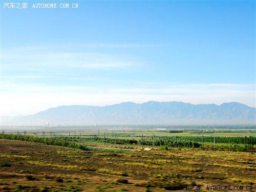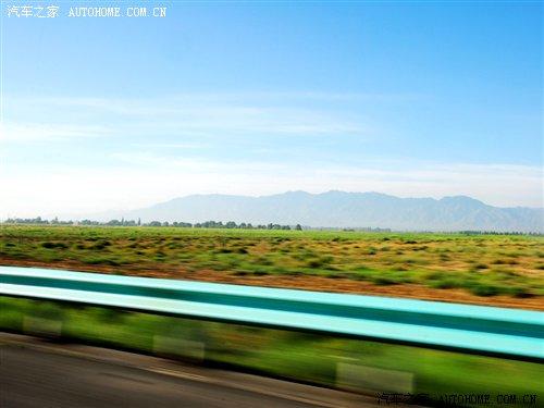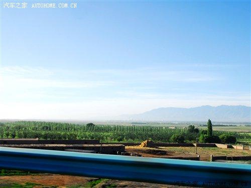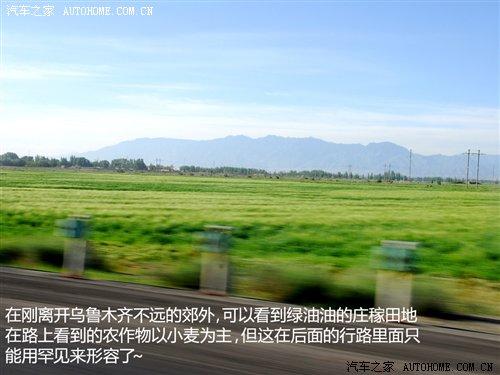 離開(kāi)高區(qū)駛?cè)雵?guó)道,車(chē)窗外出現(xiàn)了不同尋常的景色。景物也隨著我們的前進(jìn)在不斷地變化。在剛離開(kāi)烏魯木齊不遠(yuǎn)的郊外,可以看到綠油油的莊稼田地,一片片的小麥田地讓人目不睱接。