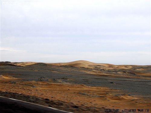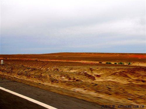 1個小時的車程后,公路兩旁不再是那土房子和綠綠的田地了,取而代之的是戈壁灘。此時公路兩旁也沒有了太多的景物,遠(yuǎn)處看到的是清晰的地平線,什么叫做天地結(jié)合或許此時你會深有體會。