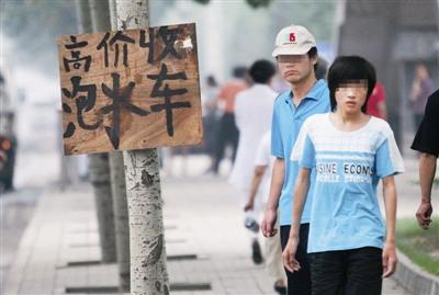 7月13日,在南四環(huán)花鄉(xiāng)橋北側(cè)路邊,一個(gè)印著“收購泡水車”的牌子引起了記者的注意。守在旁邊的小販告訴記者,他們專門收泡水車,價(jià)格好商量。