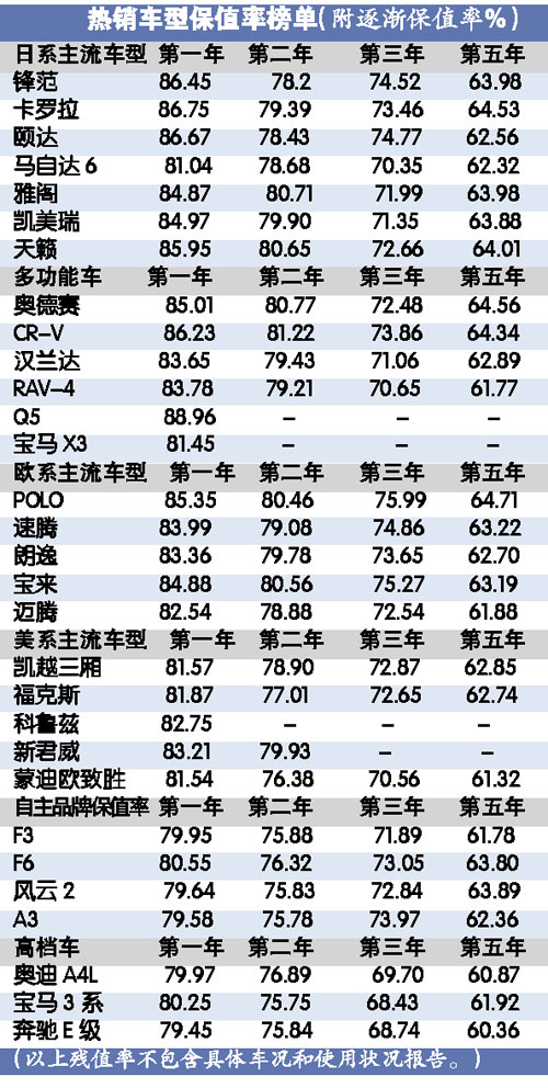 相對(duì)而言,大眾品牌的車型在廣州市場(chǎng)上繼續(xù)保持高保值率的“美名”,尤其以POLO、速騰、寶來(lái)、朗逸此類10萬(wàn)元左右的A級(jí)車保值率最高。