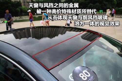 一汽-大眾CC轎跑車(chē)采用全景天窗設(shè)計(jì),在車(chē)身頂部天窗與前風(fēng)擋玻璃之間的金屬,被一種高價(jià)的特殊材質(zhì)所替代,從而產(chǎn)生一種天窗與前風(fēng)擋玻璃溶為一體的視覺(jué)效果。