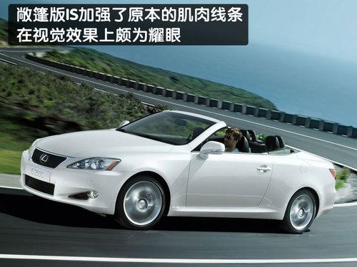 雷克薩斯IS硬頂敞篷版的車身前半部的造型設(shè)計(jì),與轎車版本的IS車系擁有極為神似的設(shè)計(jì),前保險(xiǎn)杠、頭燈、后視鏡以即車門把手都和轎車版本的IS車型相同。在車身側(cè)面,敞篷版IS加強(qiáng)了原本的肌肉線條,無(wú)論是開(kāi)篷后的拉風(fēng)身影,或是關(guān)篷時(shí)的跑車線條,都充滿了跑車的動(dòng)感效果;車尾部分,敞篷版IS則采用全新的LED尾燈設(shè)計(jì),以區(qū)別和轎車版本的差異,在視覺(jué)效果上頗為耀眼。