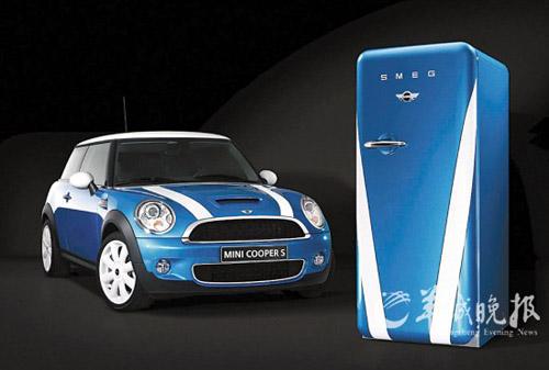 Smeg這家意大利公司與MINI公司合作,一起慶祝2007 MINI Cooper新車發(fā)布,F(xiàn)AB28MCS這款嬉皮的新冰箱就是合作的產物。這款以藍色為主色,白條紋搭襯的FAB28MCS只限量生產250臺。