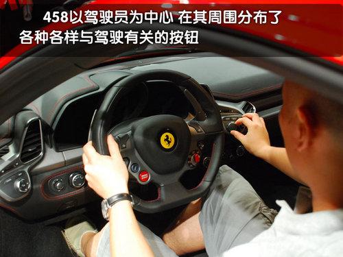 458Italia的內(nèi)飾設(shè)計(jì)理念是以駕駛員為核心,所以身處駕駛席的時(shí)候你會(huì)發(fā)現(xiàn)在你的眼前以及左右手的周圍分布了非常多的儀表、按鈕,這種感覺有點(diǎn)兒像是坐在一臺(tái)飛機(jī)的駕駛室里面。想要熟悉一下458Italia的這些按鈕真的需要一些時(shí)間。