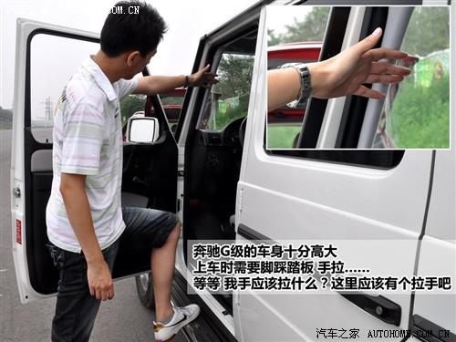 打開車門后我們發(fā)現(xiàn),奔馳G級由于離地間隙比一般的SUV還要高出不少,因此上車的動(dòng)作難度也隨之加大了。不過幸好設(shè)計(jì)了車身側(cè)踏板,但如果能在A柱上安裝一個(gè)拉手,就能讓駕駛者感到更順心一些。