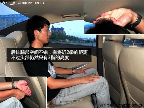 圖中的體驗(yàn)著身高175cm左右,在調(diào)整好合適的坐姿之后,前排頭部只有三指,而后排也僅僅3指,所以這點(diǎn)證明了流線型的車身線條還是會(huì)給頭部一些小的影響。當(dāng)然,超長(zhǎng)的軸距直接帶來(lái)了腿部空間的提升,作為小型車來(lái)說(shuō)后排能達(dá)到兩拳的長(zhǎng)度確實(shí)不多見。