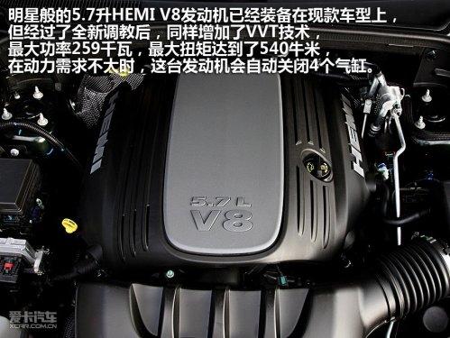 明星般的5.7升HEMI V8發(fā)動機已經裝備在現(xiàn)款車型上,但經過了全新調教后,同樣增加了VVT技術,最大功率259千瓦,最大扭矩達到了540牛米,在動力需求不大時,這臺發(fā)動機會自動關閉4個氣缸,從一臺8缸發(fā)動機變?yōu)?缸發(fā)動機,從而節(jié)省更多的燃料。兩款5速自動變速器分別對應兩臺強大的發(fā)動機。
