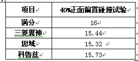在40%正面偏置碰撞試驗(yàn)中,由于車身側(cè)面和后面關(guān)鍵部位大量采用比高強(qiáng)度材料(高張力鋼板,相當(dāng)于普通鋼板4倍強(qiáng)度)更加堅(jiān)固的超高強(qiáng)度材料(超高張力鋼板),三菱翼神碰在此項(xiàng)碰撞測(cè)試中獲得不俗成績(jī),A、B柱均無形變,側(cè)門的防撞鋼梁異常明顯,前排假人坐姿端正,安全帶與側(cè)氣簾側(cè)氣囊對(duì)假人起到了明顯的保護(hù)作用,表現(xiàn)出色。值得一提的是,三菱翼神高操控性底盤表現(xiàn)搶眼,沒有像大多數(shù)偏置碰撞車輛那樣發(fā)生嚴(yán)重變形,源自EVO十代的技術(shù)平臺(tái)展現(xiàn)出優(yōu)良的穩(wěn)定性和高剛性特質(zhì)。