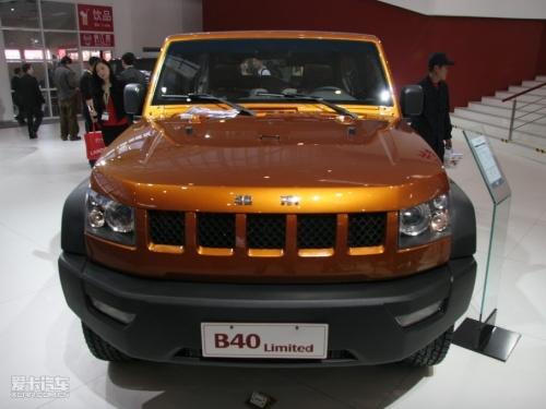就我們目前了解到的情況看,B40車身尺寸為4200×1800×1750mm,軸距為2400mm,發(fā)動(dòng)機(jī)采用2.4L直列四缸發(fā)動(dòng)機(jī),最大功率105kw(141馬力)/4800rpm,最高扭矩217N/3000-4000rpm。匹配5速手動(dòng)變速箱,采用分時(shí)四驅(qū),整體式橋,并且可選擇在后橋安裝限滑差速器,F(xiàn)RP可拆卸頂篷。