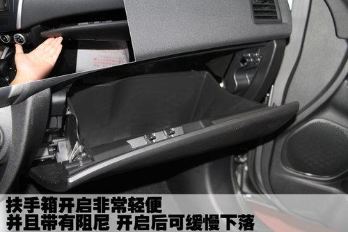 三菱ASX勁炫的扶手箱為有阻尼設(shè)計,在打開手套箱后不會因重力而自由下落,手套箱內(nèi)部空間一般,只能存放一些較小的物品。手套箱表面為塑制材料包裹,略顯生硬,整體做工十分精細。