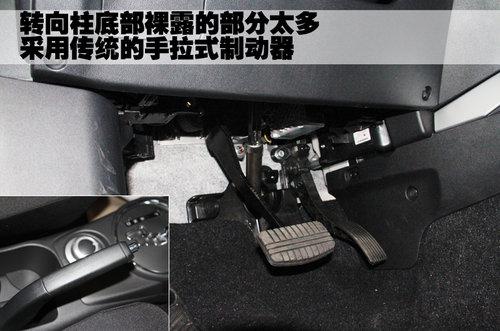 三菱ASX勁炫的轉(zhuǎn)向柱底部裸露的部分太多,沒有周密的防護(hù)板保護(hù)措施,剎車和油門踏板采用橡膠材質(zhì)包裹,起到防滑的作用。這款新車采用傳統(tǒng)的手拉式制動(dòng)器,更高端的電子式手剎并沒有出現(xiàn)在這款車上。