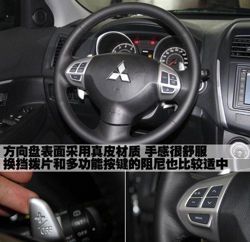 三菱ASX勁炫的方向盤表面采用真皮材質(zhì)包裹,手感非常舒服,而且這款車的方向盤配備了多功能按鍵和換擋撥片,阻尼適中,操作也很是便利。另外,三菱ASX勁炫方向盤兩側(cè)的控制桿模具做工都比較不錯(cuò),質(zhì)量水平非常到位。
