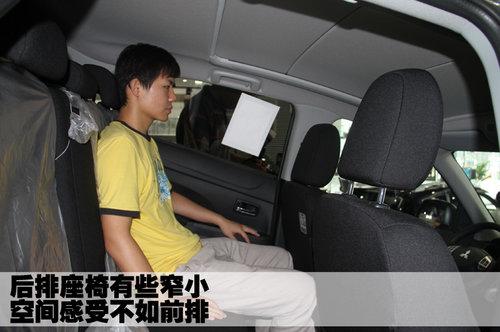 三菱ASX勁炫后排座椅靠背與坐墊的角度適中,不同身材體型的乘員在乘坐時(shí)能夠找到舒適的姿勢(shì)。但這款車(chē)的后排稍顯緊湊,頭部空間和腿部空間相對(duì)比較狹小。圖中的模特身高180厘米左右,頭部幾乎已經(jīng)要頂?shù)杰?chē)頂。