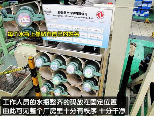 最后說一下,在工廠的角落里整齊碼放著員工自己的水瓶,從上圖我們可以很清楚的看出十分整齊,十分干凈。由此可見鄭州日產(chǎn)的整個(gè)廠房里是相當(dāng)整潔的。