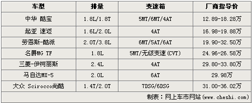 能擁有一輛屬于自己的超級(jí)跑車,一直是所有愛(ài)好速度的車迷們最終的夢(mèng)想。想象一下,慵懶的周末下午,自己開(kāi)著名車大廠的頂級(jí)座駕,招搖的見(jiàn)過(guò)城市的條條街道,必定會(huì)引來(lái)無(wú)數(shù)羨慕的眼光。不過(guò)歸為現(xiàn)實(shí),這些招人眼球的跑車價(jià)值昂貴的程度也跟他們的造型一樣,令人乍舌。這時(shí),小跑的優(yōu)勢(shì)都凸現(xiàn)出來(lái)了,在能滿足您張揚(yáng)的個(gè)性和性能的基本要求的情況下,低廉的價(jià)格是它們的殺手锏。今天網(wǎng)上車市就為這一部分車迷帶來(lái)了福音,推薦給您8款親民跑車詳細(xì)推薦。