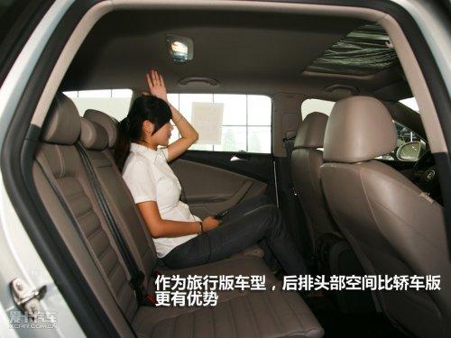 由于車頂曲線在到達C柱時不需要快速的下滑,旅行車后排頭部空間往往較轎車版本更有優(yōu)勢。從圖中可以看出模特MM坐在后排,其頭部空間可以稱之為奢侈。而PASSAT旅行版與國產邁騰一樣,都未對軸距進行加長,所以腿部空間并無太突出表現,但對于模特MM而言已完全足夠。