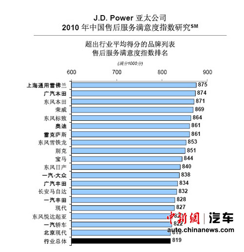2010年中國(guó)售后服務(wù)滿意度指數(shù)研究的主要評(píng)價(jià)因子包括服務(wù)質(zhì)量、服務(wù)后交車、服務(wù)啟動(dòng)、服務(wù)顧問以及服務(wù)設(shè)施等五項(xiàng)因子,以測(cè)評(píng)車主在購(gòu)車的12至24個(gè)月期間,對(duì)品牌售后服務(wù)部門所提供保養(yǎng)和維修服務(wù)的滿意度進(jìn)行評(píng)價(jià)。在此次研究中,廣汽本田以874分的總分(總分1000分)榮獲第二,僅以一分之差與冠軍失之交臂,但同比2009年結(jié)果(870分),分?jǐn)?shù)有進(jìn)一步的提升。