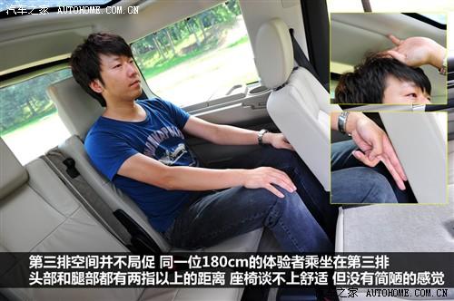 發(fā)現(xiàn)沒有采用全景天窗的設(shè)計(jì)讓人遺憾,不過前后三個(gè)獨(dú)立的天窗也能帶來非常出色的采光效果。在三排座椅全部打開的情況下,后備廂可以使用的空間會非常小,所以建議平時(shí)還是收起第三排座椅為好,而將第二排座椅也放倒后,它的最大深度可以達(dá)到1910mm,不過地板并不是完全平坦的影響了實(shí)用性。