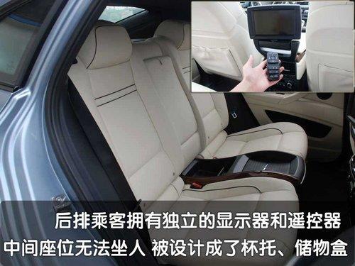 寶馬X6的后排空間被杯架與中央扶手分隔成左右兩個獨立的座椅,并與行李箱明確地分隔開來。其后排座椅后面的行李箱容積有570升,遠大于一般的跑車。寶馬X6全能轎跑車的行李箱還配備了一種折疊硬蓋,平時很實用地收藏在地板下面,以方便載運大體量物品。而當4/6比例后座靠背放倒時,后備箱容積將擴至1450升。