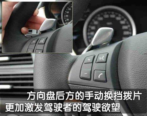 寶馬X6是其X系列中唯一標準配置帶換檔撥片方向盤的車型。由于換擋撥片集成在方向盤上,所以無論方向盤處于什么位置,駕駛者都可以用換檔撥片平滑而舒適地進行升降檔。用方向盤上的多功能按鈕還可以快速操縱電話和音響系統(tǒng),使駕駛者將注意力集中于駕駛,駕駛者還可以根據(jù)個人偏好對方向盤上的兩個按鈕進行單獨編程。