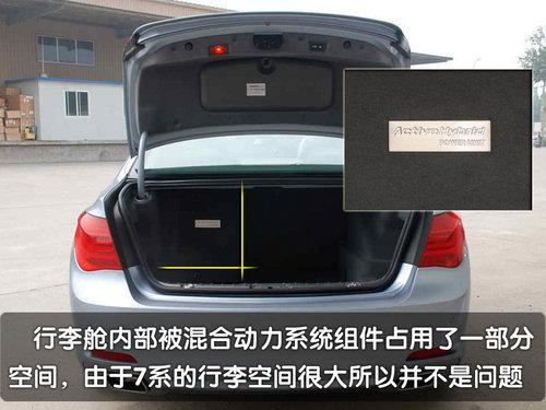 在外觀部分的辨識(shí)性上,混合動(dòng)力7系轎車(chē)采用了唯一的海藍(lán)色漆面噴涂。配合分布在車(chē)身側(cè)面、車(chē)尾的“Active HyBrid 7”字樣,讓大家很容易就能夠看出這是一臺(tái)與眾不同的寶馬7系轎車(chē)。而由于電池組的關(guān)系這臺(tái)7系混合動(dòng)力車(chē)型的行李空間也有所減少,但是相對(duì)于7系轎車(chē)充足而寬大的后備箱容積來(lái)說(shuō)減少的部分不會(huì)為實(shí)際的使用泰來(lái)太多的不便。