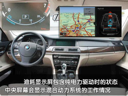 在儀表臺(tái)部分混合動(dòng)力7系轎車(chē)的油耗顯示區(qū)域與普通車(chē)型明顯不同,它的指針從“Active HyBrid ”開(kāi)始,指針指向這個(gè)部分的時(shí)候代表并不會(huì)消耗燃油。而混合動(dòng)力7系轎車(chē)的電機(jī)部分并不能單獨(dú)支撐車(chē)子行駛很長(zhǎng)的時(shí)間,它更多的作用是為了輔助引擎,以及在車(chē)輛制動(dòng)和滑行過(guò)程中收集制動(dòng)能量轉(zhuǎn)化為電能儲(chǔ)存在電池中。