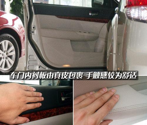 新傲虎車門內(nèi)飾板上方采用了一般的軟性材料,手感一般,同時桃木面板裝飾增添了車內(nèi)檔次。下方采用了米色真皮包裹,內(nèi)部的填充物也較為厚實,手觸感非常舒適。