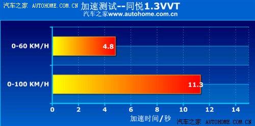 2010款1.3L同悅搭載了帶有雙VVT技術(shù)的雙頂置凸輪軸全鋁發(fā)動機(jī),相比老款在性能上有了小幅提升,最大功率99Ps/6000rpm,最大扭矩126N·m/4500rpm;該發(fā)動機(jī)并非自主研發(fā),而是江淮進(jìn)行針對性改造誕生的;在實(shí)際測試中變速箱配合著發(fā)動機(jī),整個加速過程比較線性,動力分配均勻,沒有突兀的爆發(fā)點(diǎn),最終加速時間為11.3s,成績合格。