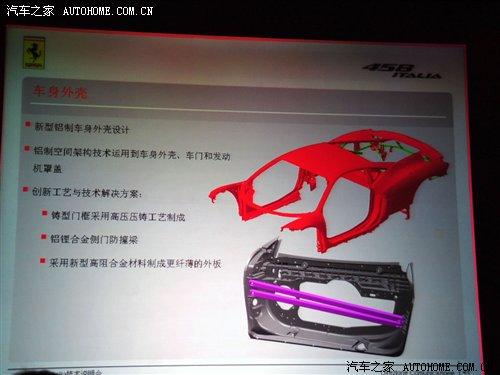 在外殼的設(shè)計方面,458 Italia采用了新型鋁制外殼設(shè)計,鑄型門框采用高壓壓鑄工藝制成,鋁鋰合金側(cè)門防撞梁,新型高阻合金材料制成更加纖薄的外層,這些全新的設(shè)計,意在為了減輕車身的重量,而對于一款跑車來說,重量的分配和材質(zhì)的選擇都是非常關(guān)鍵的,458 Italia的重量分配比例為前42:后58,在行駛過程中,由于重心的移動,可以達到完美的50:50。