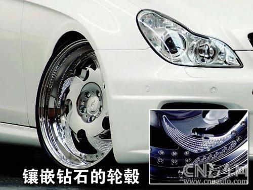 20寸的鍍鉻輪轂是此車的一大亮點(diǎn),風(fēng)火輪形狀很吸引眼球,動(dòng)感至極,寬邊的樣式讓人很容易聯(lián)想到美國黑人玩兒的“VIP范兒”。并且在每條幅邊上都鑲嵌有數(shù)不清的鉆石,四個(gè)輪轂上鉆石的價(jià)格就已經(jīng)非?捎^了,就是不知道在輪轂告訴轉(zhuǎn)動(dòng)時(shí),鉆石會(huì)不會(huì)脫落。