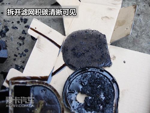 機油泵濾網(wǎng)很容易被積碳堵塞,濾網(wǎng)堵塞后能造成機油壓力低導致故障燈亮。而由下圖可見機油泵濾網(wǎng)上已經(jīng)被積碳被蓋,雖然這些積碳很容易手工清除,但還要進行拆解處理。