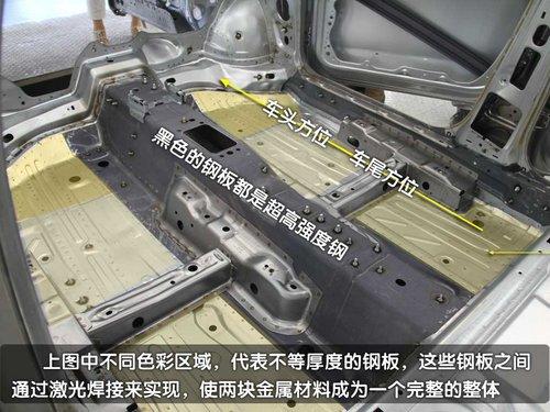 “坦克車全身都是鋼板,但是它不一定會(huì)很結(jié)實(shí)”,這就意味著車輛在設(shè)計(jì)上要使用不同屈服強(qiáng)度的鋼板以實(shí)現(xiàn)吸收能量、乘員艙不變型的目的。在上面的圖片中是一臺(tái)邁騰轎車的結(jié)構(gòu)圖,整車使用了多種不同強(qiáng)度的鋼板,在駕駛室周圍的鋼板以及結(jié)構(gòu)是最結(jié)實(shí)的,在碰撞中駕駛室部分的變形量會(huì)很小。