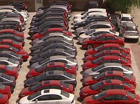 在新亞市的一個(gè)商品車停車場,記者看到這個(gè)停車場里停滿了斯柯達(dá)還沒有出售的汽車,從汽車前面的標(biāo)識牌可以看到,一輛汽車的啟用日期是2010年的3月18日。一輛汽車的啟用時(shí)間是2010年的4月,到現(xiàn)在有4個(gè)月左右的時(shí)間。另外一輛汽車的啟用日期是2009年12月9號,也就是從生產(chǎn)到現(xiàn)在已經(jīng)有8個(gè)月的時(shí)間了。