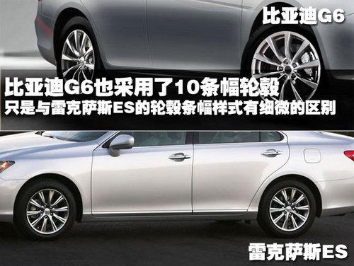 比亞迪G6采用的是10條幅鋁合金輪轂,目前還不確定輪胎的尺寸。但我們可以從輪轂樣式上看出來,比亞迪G6模仿雷克薩斯ES的確非常仔細(xì),這兩款車只有輪轂條幅的樣式有很細(xì)微的區(qū)別。多條幅的輪轂樣式看上去帶有幾分運(yùn)動(dòng)感,似乎與比亞迪G6整車的豪華定位略有不符。