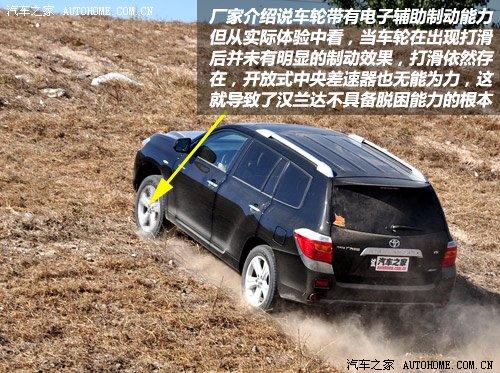 漢蘭達(dá)的3.5升車型都為四驅(qū),從而也不會上演“爬坡門”的尷尬,但無論是從定位、軸距、輪胎還是懸掛結(jié)構(gòu)來講,它都不適合在野地里行駛,而且廠家宣稱的電子輔助制動的效果也不明顯,從而使車輛的脫困能力非常有限。