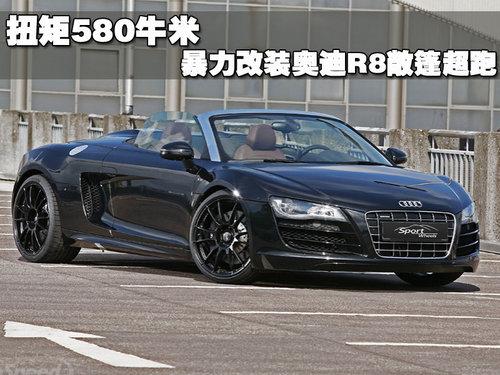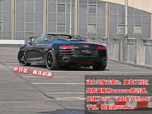 奧迪R8 spyder在今年的北京國(guó)際車(chē)展上正式亮相,火辣的外形讓其瞬間成為車(chē)展上最受歡迎的車(chē)型之一。奧迪官方版R8 Spyder搭載一款5.2升V10發(fā)動(dòng)機(jī),最大輸出功率為392千瓦,峰值扭矩530Nm,最高車(chē)速313公里/小時(shí)。這一串?dāng)?shù)據(jù)對(duì)車(chē)迷們來(lái)說(shuō)已經(jīng)相當(dāng)勁爆了,不過(guò)德國(guó)知名改裝廠商Sport-Wheel似乎對(duì)此并不滿(mǎn)足。他們近日推出了一款特別改裝版R8 Spyder,將動(dòng)力提升到了令人驚嘆的448千瓦!