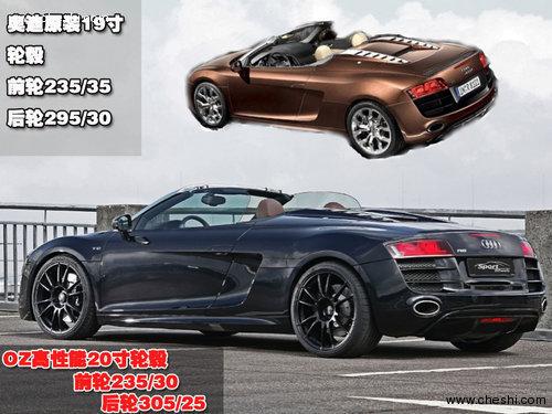 由Sport-Wheel出品的這款改裝版奧迪R8 Spyder在全車(chē)外形上并沒(méi)有做太大改動(dòng),主要著眼于動(dòng)力的提升。不過(guò)為了配合超強(qiáng)的動(dòng)力,他們選裝了傳奇品牌OZ制造的Ultraleggera HTL系列輪胎。這是一套20寸的運(yùn)動(dòng)輪轂,采用前輪235/30-20后輪305/25-20的配比,在安全性上較官方版更勝一籌,價(jià)值40000元。