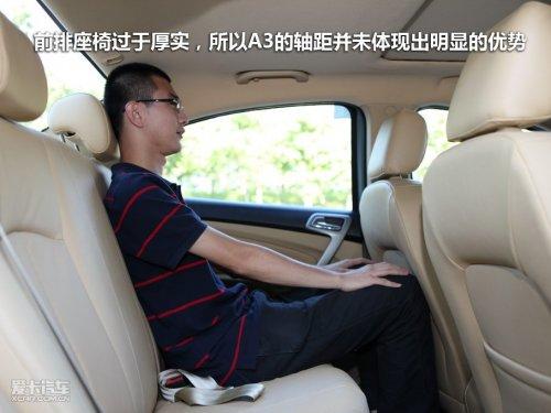 A3座椅調(diào)節(jié)幅度成為了空間的瓶頸,此次改款奇瑞并未對A3的空間方面進(jìn)行調(diào)整,前排座椅坐姿仍然偏高,身材超過1.82米的人很難找到太舒服的坐姿,并且座椅的形狀也不利用空間最大化的利用。