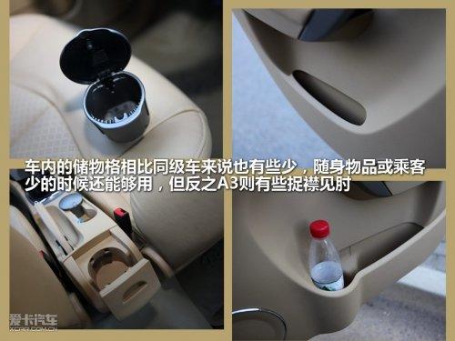車內(nèi)的儲物格相比同級車來說有些少,移動煙灰缸占用了一個杯架,手機(jī)、煙盒等等則占用了另一個,而杯架真正的主人只能放在車門上了。其方向盤左側(cè)提供了一個儲物格,只是這個儲物格開開關(guān)關(guān)的實在不方便,所以只能放洗車卡之類的不太常用的東西。也許這么看A3的儲物格夠了,可是如果隨身的東西再多一些,A3的儲物空間就捉襟見肘了。