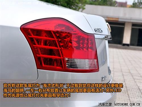 除了線條比較優(yōu)美外,帝豪EC8在大燈設(shè)計(jì)上也是比較新穎的,我們此次試駕的EC8車型在前大燈上使用了帶透鏡的鹵素大燈,不過這與我們在北京車展上見到的EC8展車不一樣,那時(shí)候的EC8配有氙燈和大燈清洗裝置,本次試駕的車沒有大燈清洗,廠家工作人員表示未來量產(chǎn)車一定會(huì)有氙燈和大燈清洗!除了前燈外,EC8的尾燈設(shè)計(jì)成了類似于海鳥翅膀的樣子,并使用了LED作為光源。