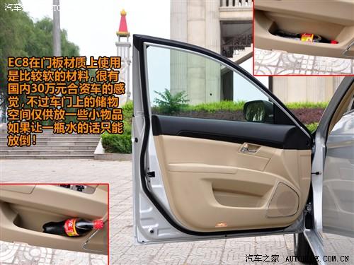 上面我們說了,帝豪EC8在內(nèi)飾上使用的材質(zhì)上均為軟質(zhì)材料,摸起來很有手感,材質(zhì)的質(zhì)地與做工與國內(nèi)20-30萬元的車型很有一拼。不過在一些小細(xì)節(jié)上,EC8還需進(jìn)行一些處理,如車門上的儲物槽!
