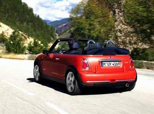 2004年Mini敞篷車上市,車頂全自動開啟,只需15秒鐘。開啟按鈕按下后,首先開啟的是一體式滑動車頂,然后整個(gè)軟車頂打開。由于采用了Z型折疊機(jī)構(gòu),整個(gè)車頂可以在后排座椅之后非常緊湊地折疊起來,無需后部蓋罩。