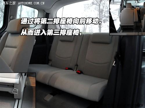 相比更多人關(guān)心的是MPV的后排乘坐舒適性以及便捷性,很明顯馬自達5第二排著重考慮乘坐兩人,兩個標準設計的座椅各自帶有扶手,坐墊較長且厚實,乘客乘坐時可以得到較好的舒適性,不過中間的座位的實用性就大大折扣了,若將其放下則成為了另一個扶手并兼顧了杯架的功能,另外,在前排座椅的的背面安裝了小桌板。