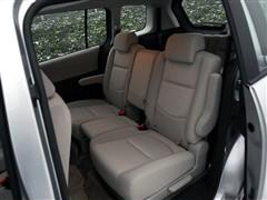 將第二排座椅向前滑動則可進入第三排,第三排座椅相對簡單,在造型上沒有前面那么講究,靠背和坐墊比較平直,雖然軸距較短,但是較高的車頂和高挑的車頂弧線會帶來相對充裕的頭部空間,調(diào)整好坐姿對于腿部是一個彌補。