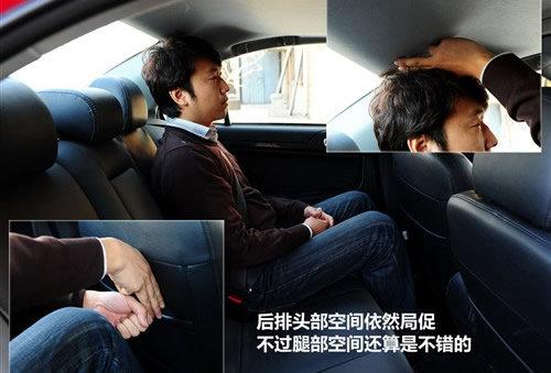 翼神的乘坐空間表現(xiàn)比?怂股赃d,身高180cm的乘客在前排只有三指的空間,后排的頭部空間同樣不寬裕,基本只有兩指的水平。2635mm的軸距僅比?怂苟塘5mm,所以后排腿部空間表現(xiàn)還不錯,有一拳半的空間。