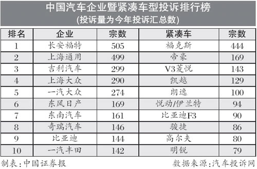 汽車投訴網(wǎng)本期緊湊車型投訴榜上榜名單與上期相比變化不大,一汽大眾高爾夫和上海大眾斯柯達明銳分別以80宗和79宗投訴進入前十名單。在高爾夫80宗投訴中,有超過8成是投訴4S店未能按時交車,這也成為目前唯一一個因非質(zhì)量問題而進入前十投訴名單的車型。賽拉圖和東風(fēng)標致307則退出緊湊車型投訴榜前十名行列。福克斯則比上期增加92宗,繼續(xù)高居緊湊車型投訴榜榜首,與第二名的差距也增加至近300宗,與第十名更是有5倍的差距。
