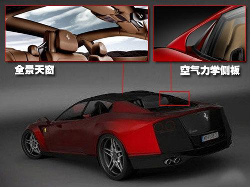 延續(xù)法拉利599GTB車(chē)側(cè)流體力學(xué)設(shè)計(jì),這小小的兩片隆起,會(huì)額外提供一部分下壓力使車(chē)身更加貼近地面。全景天窗在低端車(chē)型早已司空見(jiàn)慣,出現(xiàn)在法拉利四門(mén)超跑上的作用,無(wú)非是使無(wú)法享受駕駛樂(lè)趣的后排乘客看看風(fēng)景,亦或是馳騁大街小巷時(shí),讓后排貴賓真正看清楚什么叫做“天旋地轉(zhuǎn)”吧。