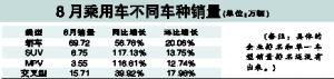 受國家鼓勵政策影響,節(jié)能車銷售大幅上漲,132款節(jié)能汽車產品8月銷量為1296萬輛,較7月份增長32.04%,明顯高于轎車的總體增長水平。8月份,1.6L及以下排量轎車銷售4807萬輛,環(huán)比增長21.08%,同比增長60.56%,占轎車銷售總量的68.94%,占比較7月份增加1.03個百分點。