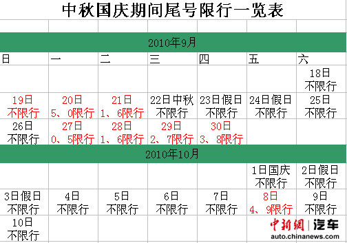 兩節(jié)的尾號(hào)限行措施暫停期共計(jì)16天,本周六(18日)起,限行措施正式進(jìn)入“假期狀態(tài)”,根據(jù)限行尾號(hào)排序,原本周五限行的“4、9”尾號(hào)受益最大,從9月18日起可連續(xù)20天上路不限行。