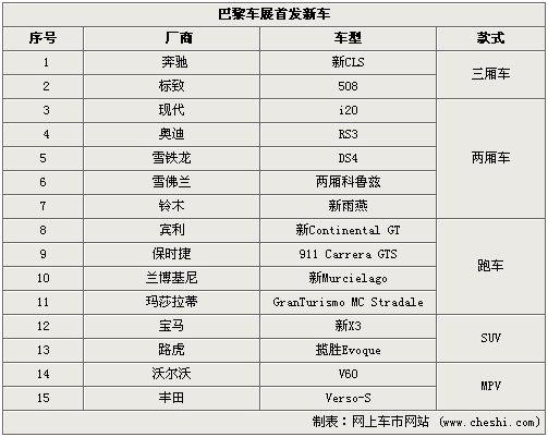 2010巴黎車展將于9月底正式開幕,本屆車展新車云集,數(shù)十款新車將在車展全球首發(fā),包括奔馳、寶馬、標(biāo)致等歐洲本土廠商,也有雪佛蘭、豐田等海外廠商。而這次在開幕前我們所盤點(diǎn)的是巴黎車展首發(fā)后將引入國內(nèi)銷售的新車,預(yù)計將有15款首發(fā)車后續(xù)引入。